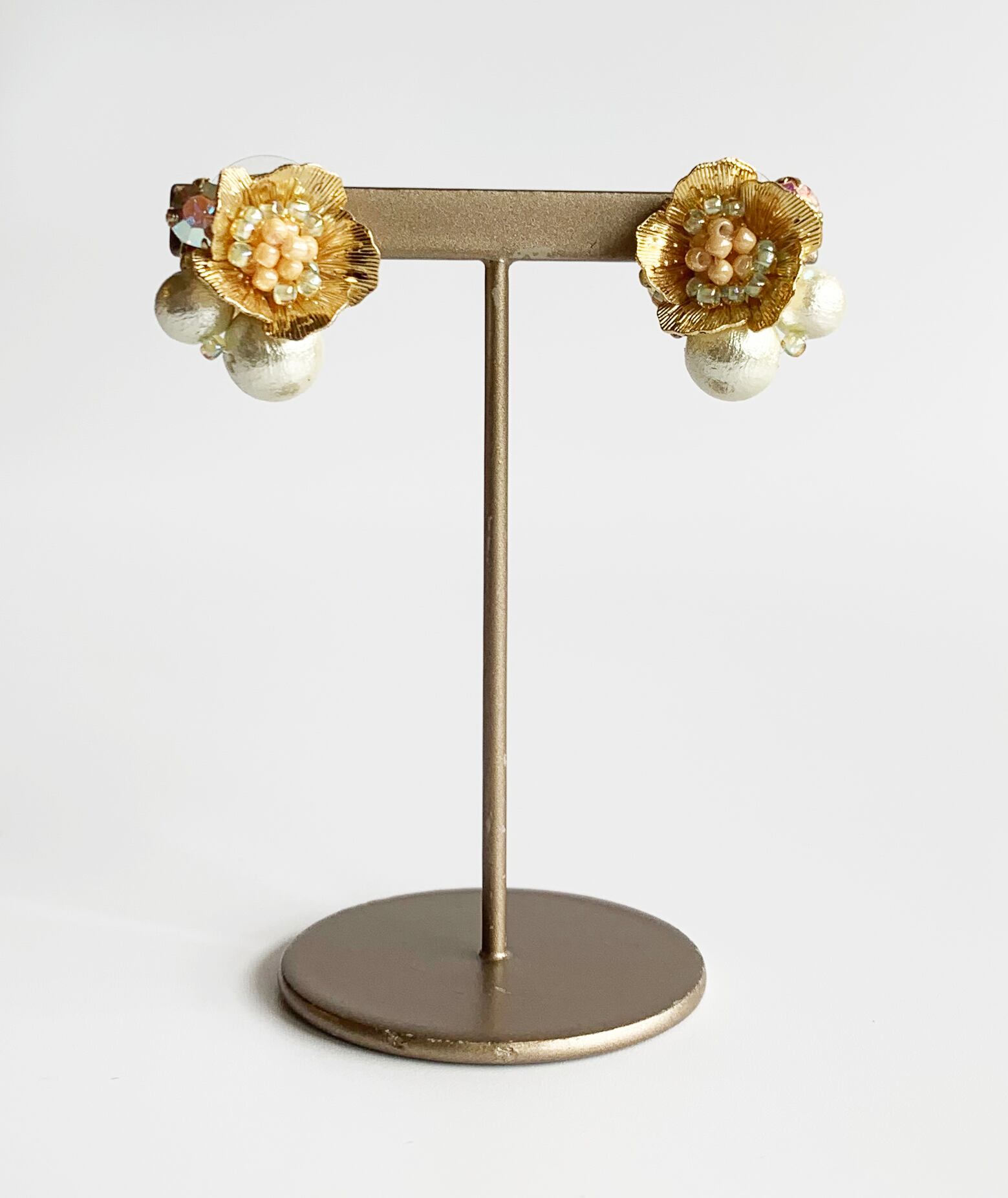 素材:ガラス・コットンパール・真ちゅう・チタンポスト(ピアス)