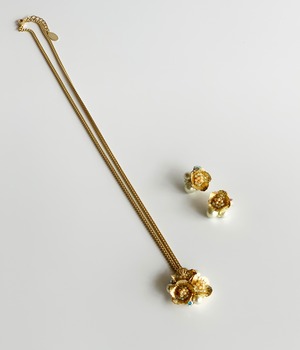 小さなお花が付いた少し立体的なピアスとイヤリングです。